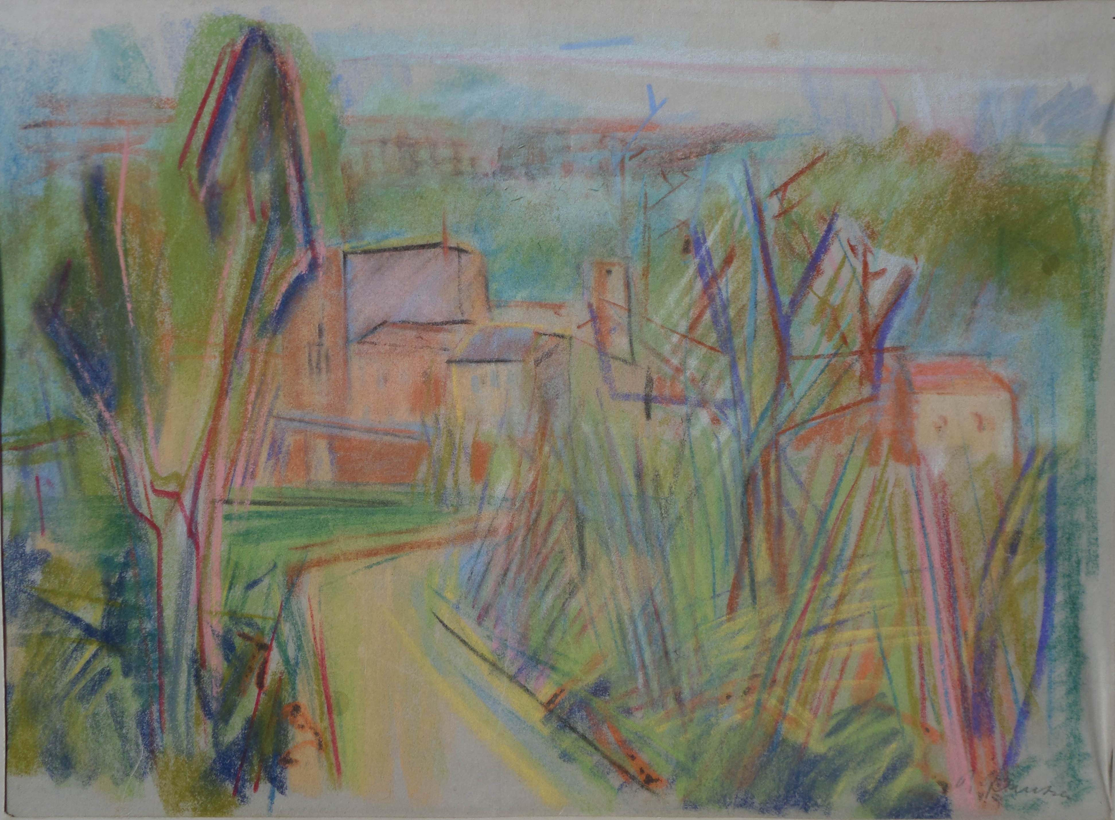 Dorfstrasse ohne Jahr /Wachskreidezeichnung, 52 x 38 cm Zeichnung von Peter Janssen 1906 - 1979