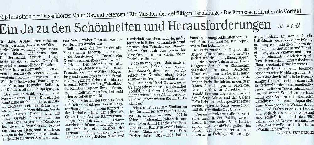 Malerfreunde - Oswald Petersen - Zeitungsartikel