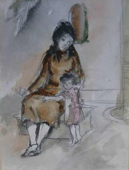 Frau mit Mädchen um 1935 / Aquarell., 37 x 27 cm Aquarell von Peter Janssen 1906 - 1979 Privatbesitz: Stephan Kotthaus